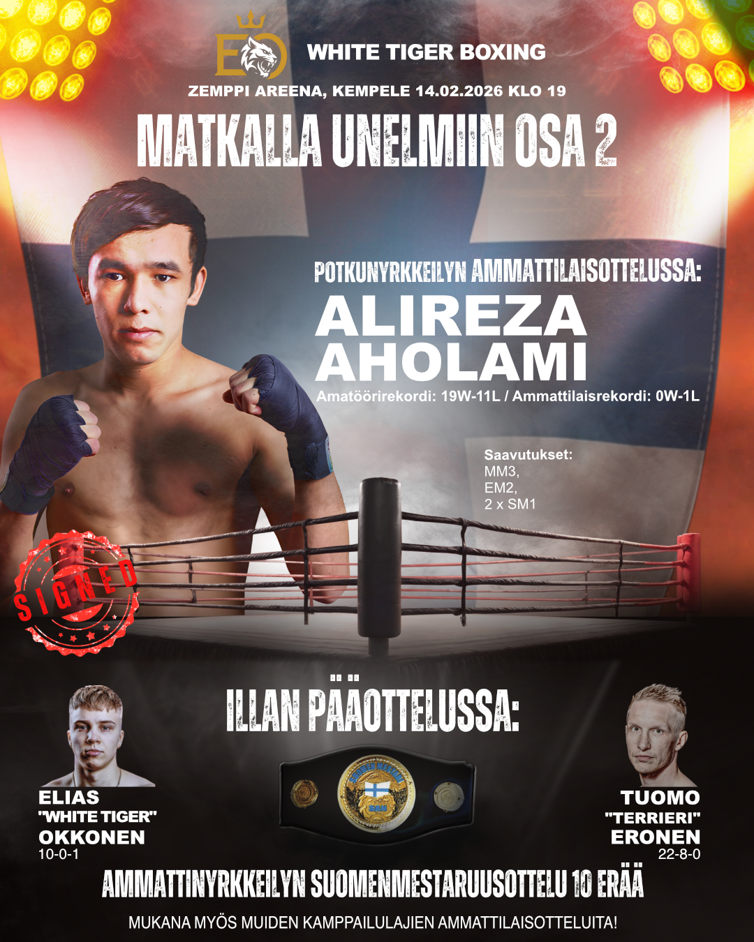 Alireza Aholami on potkunyrkkeilyn MM- ja EM-mitalisti sekä kaksinkertainen Suomen mestari. Alin tavaramarkkejä ottelussa ovat nopeus ja räjähtävyys, kovat lyönnit ja näyttävät erikoistekniikat. Ali on kehässä todellinen showmies, jonka ottelu ei jätä ketään kylmäksi!